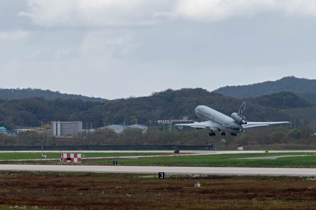 This can be seen in an Air Force exercise, where an Omega Air Refueling Services KDC-10 refueling aircraft flew with F-16 Fighting Falcons from Osan Air Base, South Korea, to Singapore to provide mid-air refueling. Commercial aircraft capacity was not completed during the year.